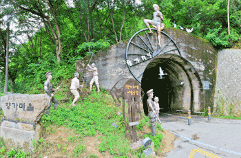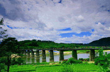 À¯¿øÁöÀÇ °¹° ¼Ó¿¡ ¹ÚÇô ÀÖ´Â 8°³ÀÇ Ã¶µµ±³°¢Àº ÀÏÁ¦ °Á¡±â¿¡ ¼øÃ¢°ú ³²¿øÀ» ¿¬°áÇϴ öµµ¸¦ °¡¼³ÇÏ·Á´Ù Áß´ÜµÈ ÈçÀûÀÌ´Ù. ÀÌ ´Ù¸®¸¦ ÀÚÀü°Å±æ·Î Ȱ¿ëÇÏ¸é¼ ´Ù¸® Áß°£¿¡ Ư¼ö°ÈÀ¯¸®·Î µÈ ½ºÄ«ÀÌ¿öÅ© ±¸°£À» Á¶¼ºÇß´Ù. À¯¿øÁö ±Ùó¿¡´Â öºÐ µîÀÇ ¹Ì³×¶öÀÌ ´Ù·® ÇÔÀ¯µÈ ´ë°¡ ¾à¼öÅͰ¡ ÀÖ´Ù.